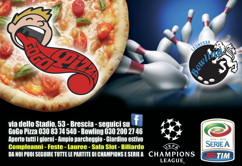 Benvenuti al GOGOPIZZA, siamo aperti tutti i giorni dal Lunedì alla Domenica, festivi compresi, dalle 18:30 alle 24:00. Il GOGOPIZZA nasce all'interno del BOWLING LEONESSA, offriamo un ambiente luminoso ed accogliente col desiderio di abbinare in un unica location gusto e divertimento, caratteristica unica del GOGOPIZZA è il NUOVO MODO DI MANGIARE LA PIZZA, non più la pizza tradizionale al piatto, ma una carrellata di gusti sempre diversi dalla classica capricciosa alla più dolce ad esempio la pizza alla banana e cannella, servite una dopo l'altra sempre calde e gustose. Dopo la pizza, divertimento assicurato con le 12 piste da bowling con zona discobowling e la sala giochi.